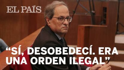 Lo había anunciado la víspera: no pensaba defenderse, sino atacar. Y cumplió cuando convirtió su última palabra en un discurso político en el que cargó una y otra vez contra la justicia. Quim Torra afirmó este lunes ante el tribunal que le acababa de juzgar por desobediencia que, aunque le condene, él considera que su legitimidad como president seguirá intacta: “Solo el Parlament escoge a sus presidentes o los censura”. En una declaración en la que no renunció a la defensa jurídica, admitió haber desobedecido la orden de la Junta Electoral de retirar lazos amarillos en campaña; lo hizo, afirmó, porque pensaba que la orden era “ilegal”.