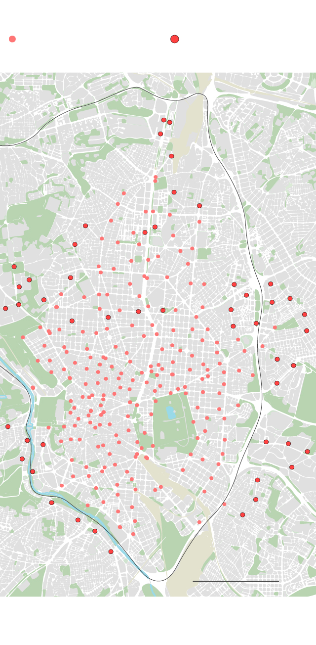 Es la segunda vez en dos años que Bicimad crece. El año pasado se terminó de ejecutar plan de crecimiento ideado por el equipo de la exalcaldesa Manuela Carmena. En septiembre de 2019, y por primera vez, las bicis públicas salían de la M-30. Una visión que se mantiene en las nuevas estaciones proyectadas. También "el compromiso con los distritos del sur", ha remarcado el alcalde. El mapa de distribución de las futuras bases muestra que se estrenan en las calles de Latina (con tres estaciones), Usera (dos) y Carabanchel (dos). También en Moratalaz (cuatro). Además, se refuerza su presencia en Ciudad Lineal (ocho) y Puente de Vallecas (tres).
