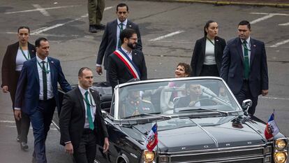 Gabriel Boric deja el Congreso Nacional siendo saludado por niños