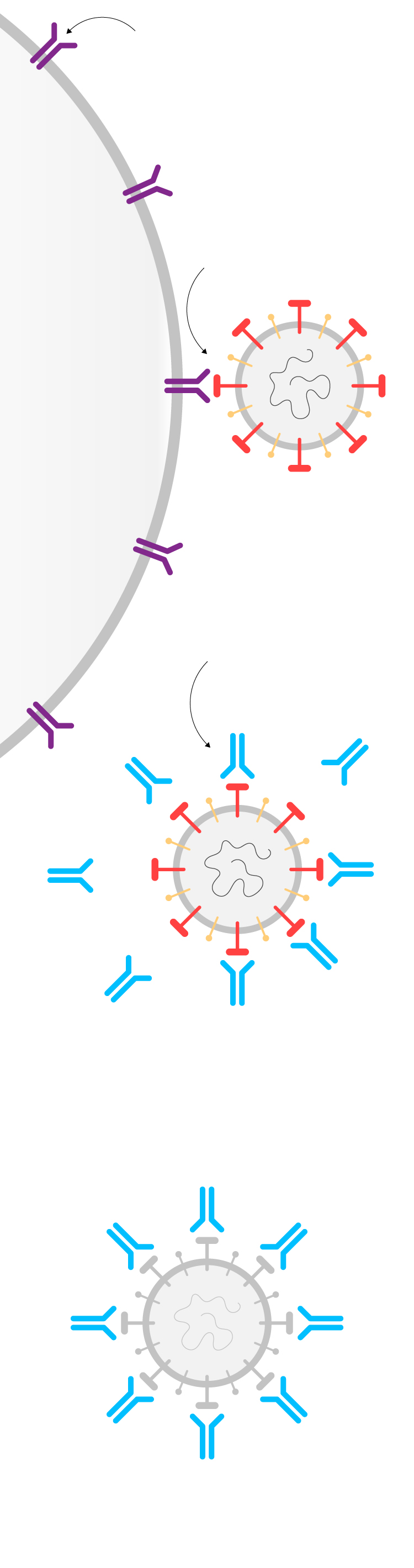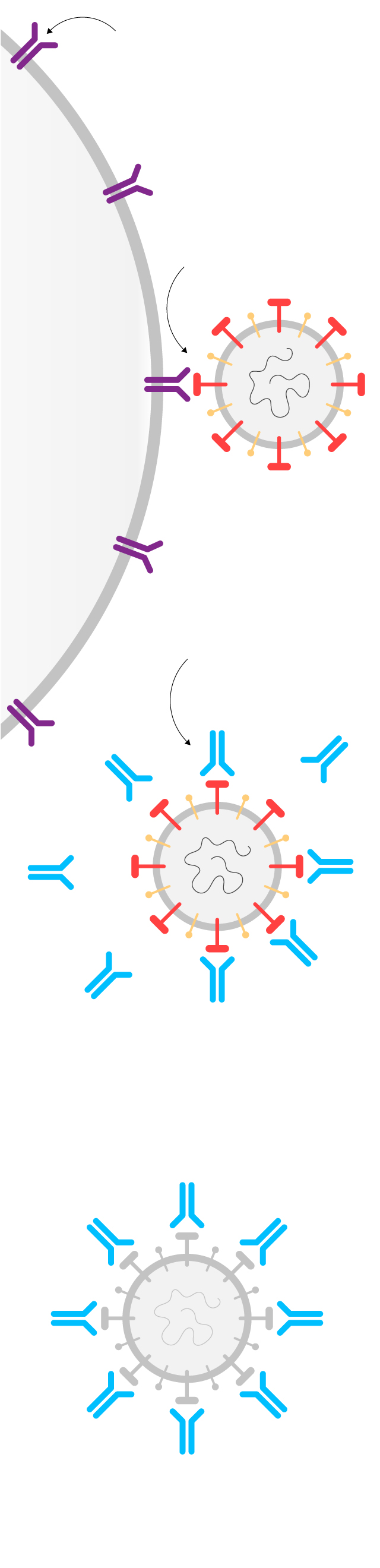 Así los virus quedan neutralizados y se evita que penetren en las células humanas y las conviertan en fábricas de nuevos virus.
