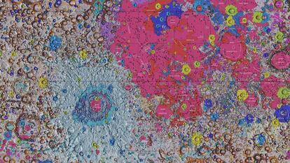 Los investigadores del Servicio Geológico de EE UU (USGS), en colaboración con la NASA y el Instituto Planetario Lunar, han completado una de las herramientas fundamentales para la exploración lunar: el mapa más completo del satélite natural de la Tierra. Tras el tratamiento de toda la información disponible y más de dos décadas de trabajo, el Mapa Geológico Unificado de la Luna, como se denomina la última cartografía, permite planificar misiones, seleccionar los mejores lugares para alunizajes y asentamientos, identificar futuros yacimientos de recursos y disponer de una guía única de un cuerpo celeste que supone un testigo natural del origen de la Tierra. “Es una herramienta única para la ciencia”, advierte Jesús Martínez Frías, jefe del Grupo de Investigación de Meteoritos y Geociencias Planetarias del CSIC y responsable del Laboratorio de Geociencias de Lanzarote.