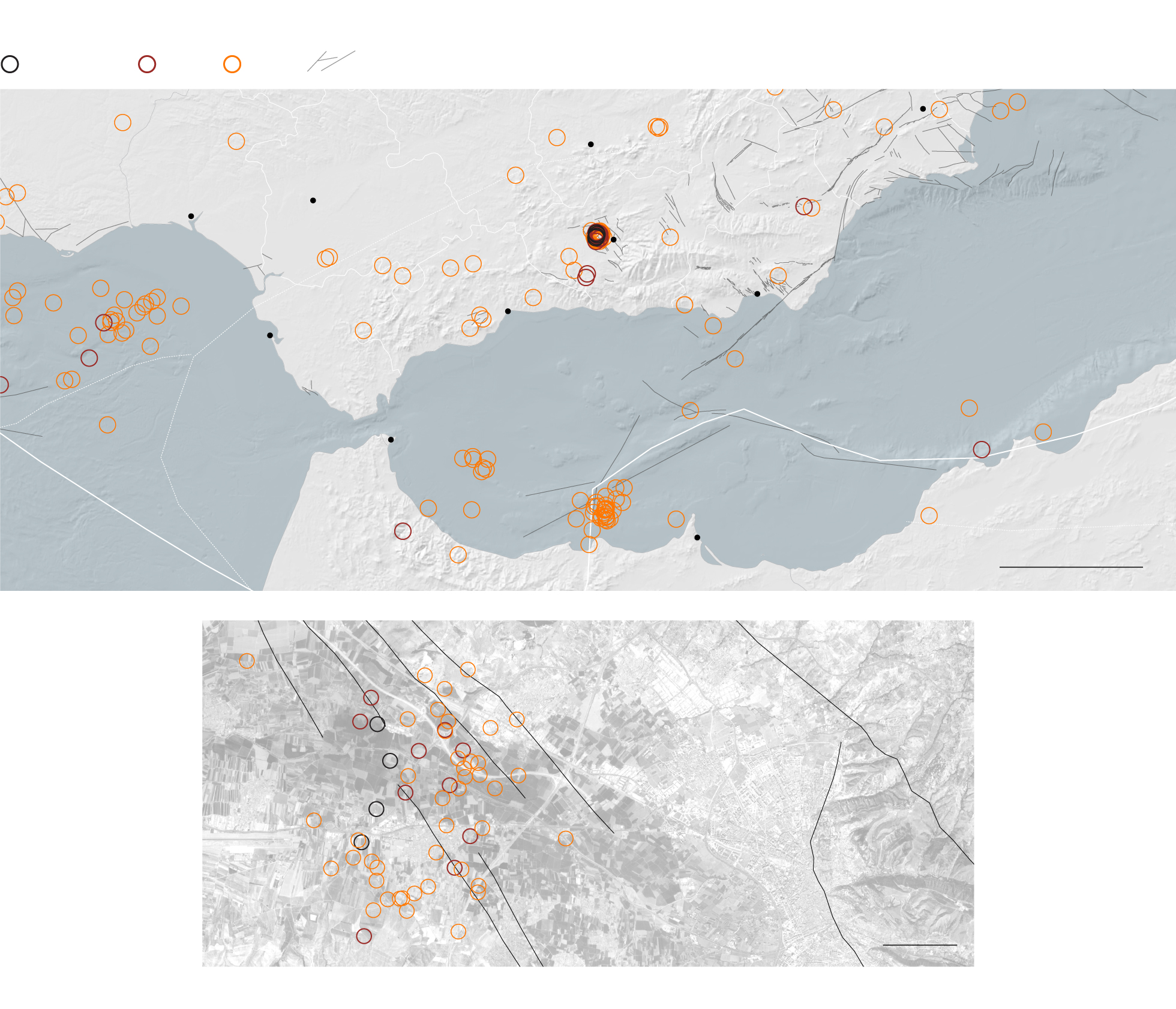 Una amplia zona peninsular vive con un alto o muy alto peligro de terremotos por la aproximación de placas tectónicas, la existencia de fallas asociadas y la configuración del terreno
