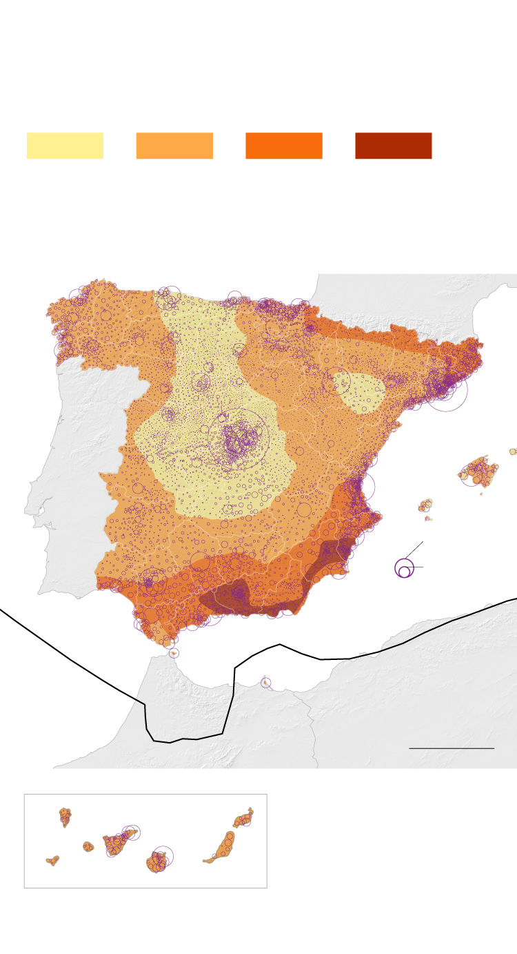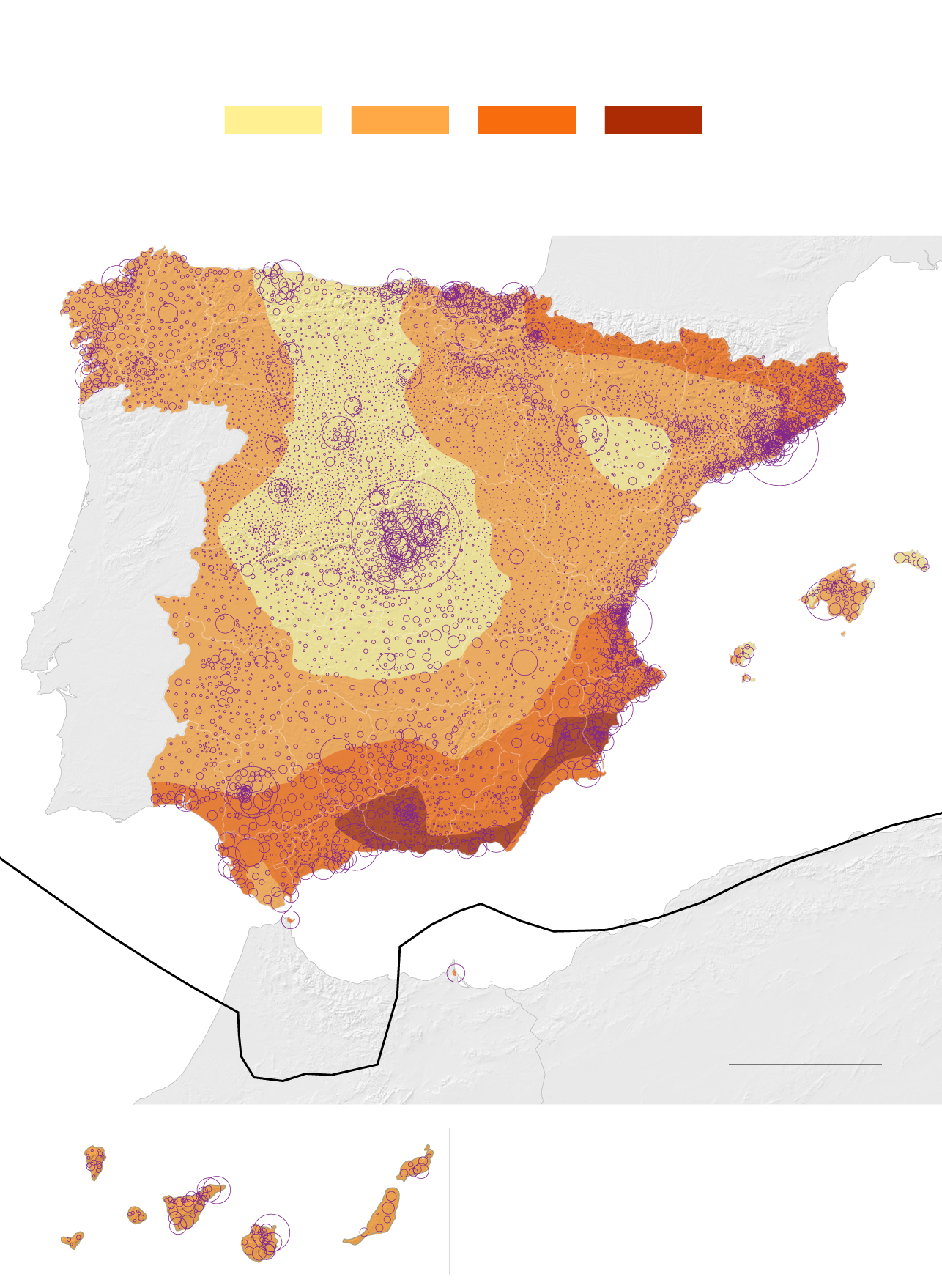 A partir de las peculiaridades geológicas, España concentra una extensa “zona caliente”, según la califica este sismólogo. Y abarca desde Huelva hasta Alicante, los Pirineos y una parte de Galicia. En estas áreas, con una población superior a los 14 millones de habitantes, los riesgos de sufrir terremotos son altos, aunque la frecuencia de seísmos grandes resulta menor. “La velocidad de deformación”, señala Pérez, “es lenta y ocurren pocos y espaciados”. Ruiz Constán añade por su parte: “Andalucía y el Este peninsular se encuentran en el límite de las placas, pero la sismicidad es difusa”.