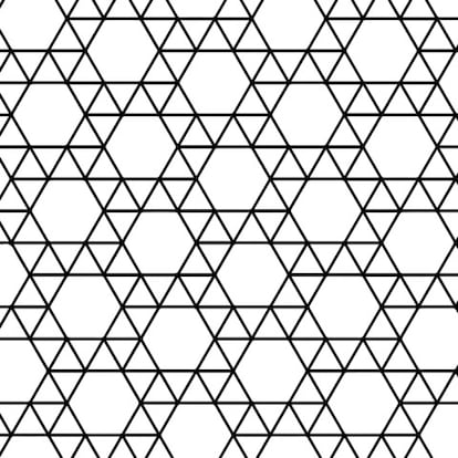 También son muy frecuentes, en todo tipo de embaldosados y recubrimientos decorativos, los teselados semirregulares, formados por dos o más polígonos regulares, pero no dispuestos de cualquier manera, sino repitiendo siempre un mismo patrón (en la figura, un teselado semirregular formado por hexágonos regulares y triángulos equiláteros). Puede parecer que esta fórmula da mucho juego, pero no hay muchos teselados irregulares distintos. ¿Cuántos son?