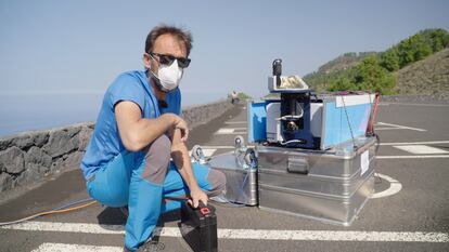El jefe de sistemas de Izaña, Ramón Ramos, fue el primero en aterrizar en ese punto de la isla, que les pareció idóneo para observar las emanaciones que surgen de Cumbre Vieja. “Hemos asaltado la cafetería, la tenemos cerrada, y el día que la quieran utilizar... la tenemos hecha un asco”, bromea Ramos. Allí se instaló su pequeño centro de control para ordenadores y otras herramientas; el instrumental científico vigila el penacho desde el techo y el aparcamiento del centro de visitantes. “Al empezar la erupción vimos la necesidad y la oportunidad de intentar monitorizar la pluma [columna] volcánica: el tamaño, la distribución, los compuestos, de la forma más sencilla posible. El domingo lo decidimos, el lunes desinstalamos el instrumental de Izaña y vinimos el mismo martes; por la noche ya estaba operativa”, cuenta el investigador. Esos tres aparatos avanzados analizaban la atmósfera en el observatorio de Izaña, que pertenece a la Agencia Estatal de Meteorología (AEMET).