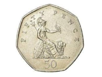 Algunos lectores han señalado que también hay monedas con forma de polígonos de Reuleaux. La más conocida es, seguramente, la moneda británica de 50 peniques, que es un heptágono de Reuleaux.