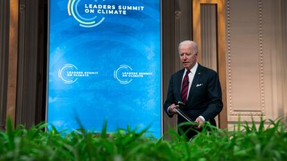 El presidente estadounidense, Joe Biden, se ha comprometido ante Naciones Unidas a que las emisiones netas de gases de efecto invernadero de su país se reduzcan entre un 50% y un 52% en 2030 respecto a los niveles de 2005. Se trata de un giro importante en la política seguida por EE UU en los últimos años e implicará una profunda transformación de la economía de esta potencia. El compromiso de Biden, que se ha hecho oficial en la cumbre climática internacional convocada para este jueves y viernes por el demócrata, supone también que todo su sector eléctrico no podrá generar en 2035 dióxido de carbono, el principal gas de efecto invernadero. El fin último es que EE UU logre en 2050 la neutralidad de sus emisiones, es decir, que solo se puedan expulsar los gases que los sumideros —como por ejemplo los bosques— puedan capturar para que no se acumulen en la atmósfera y sobrecalienten el planeta.