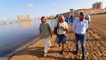 La visita se ha producido cuando se cumplen 10 días de la aparición de los primeros peces muertos en las playas de la laguna salada, y con el ambiente caldeado entre organizaciones ecologistas, vecinos, oposición política, Gobierno autonómico, agricultores y pescadores. La ministra ha visitado las zonas donde aparecieron peces y se ha detenido en la rambla del Albujón, que según datos del Ejecutivo murciano vierte cada día 30 millones de litros de agua dulce y cinco toneladas de nutrientes al mar Menor. Las explotaciones agrarias del Campo de Cartagena están conectadas a este canal, por donde drena toda la cuenca.