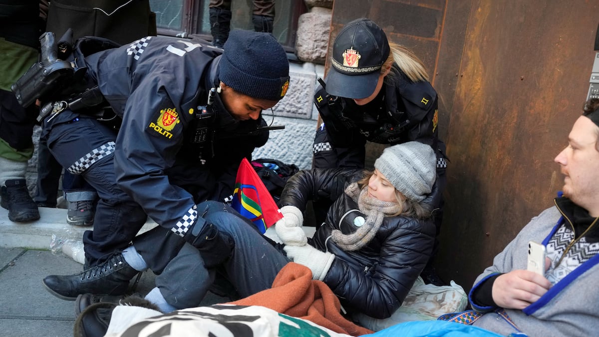 Líderes de la minoría sami y simpatizantes ecologistas que exigen la eliminación de las turbinas eólicas de los pastos de renos han bloqueado en los últimos días el acceso a varios edificios gubernamentales. Thunberg, junto a otras personas que bloqueaban el acceso a una de las puertas del Ministerio de Finanzas, han sido levantadas por agentes de policía y trasladadas a otro espacio, momentos durante los cuales los otros manifestantes coreaban consignas.