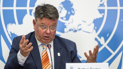 A la crisis climática generada por el ser humano, que está haciendo que las temperaturas planetarias alcancen niveles récord desde que existen registros fiables —arrancan en el siglo XIX—, se le une ahora El Niño, un fenómeno que caldea determinadas zonas del océano Pacífico y que acaba teniendo repercusiones globales. “Se espera que en los próximos meses se instaure un episodio de El Niño, que ejerce un efecto de calentamiento. Sumado al cambio climático causado por las actividades humanas, elevará las temperaturas mundiales hasta límites desconocidos”, ha advertido este miércoles el secretario general de la Organización Meteorológica Mundial (OMM), Petteri Taalas. “Esto tendrá repercusiones de gran alcance para la salud, la seguridad alimentaria, la gestión del agua y el medioambiente. Tenemos que estar preparados”, ha añadido a través de un comunicado Taalas, el máximo responsable de este organismo dependiente de la ONU y que agrupa a los principales servicios meteorológicos del planeta.