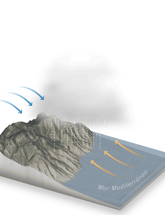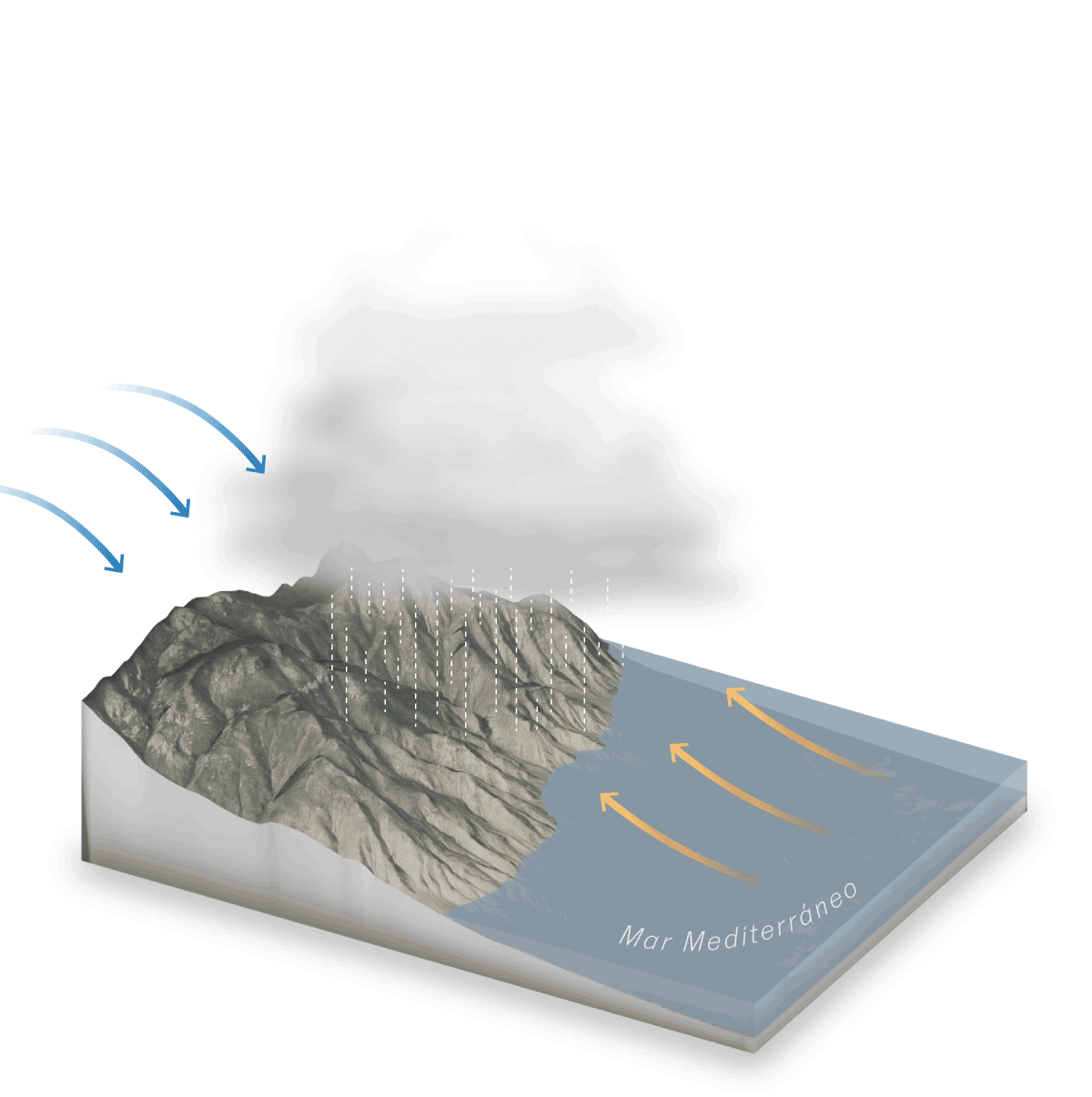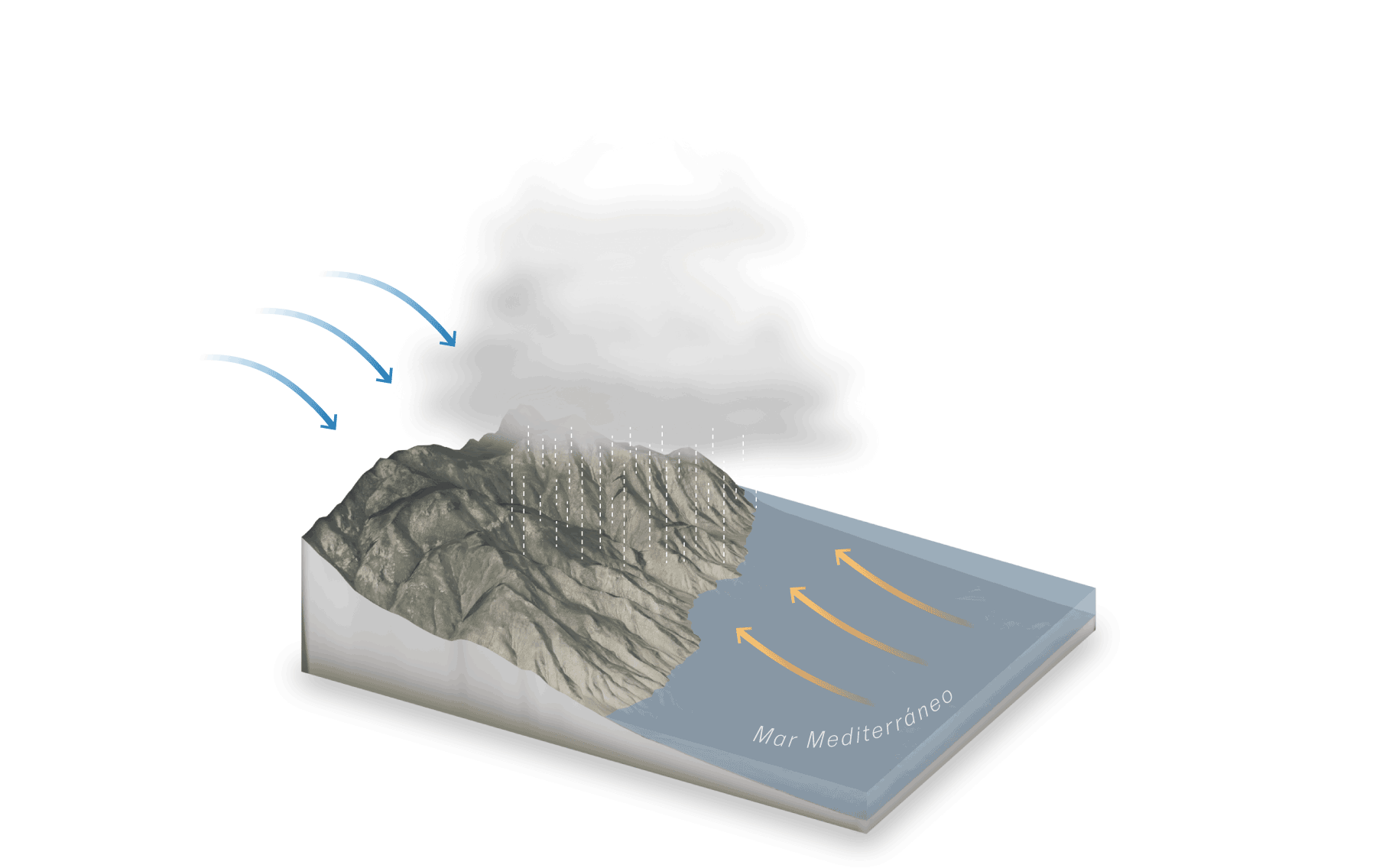 Se genera una masa de aire frío estancada, que choca con el aire caliente y húmedo del Mediterráneo
