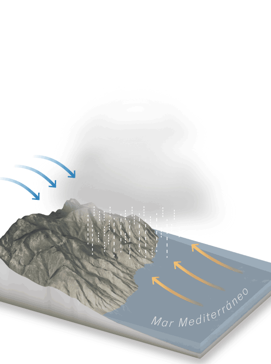 Se genera una masa de aire frío estancada que choca con el aire caliente y húmedo del Mediterráneo