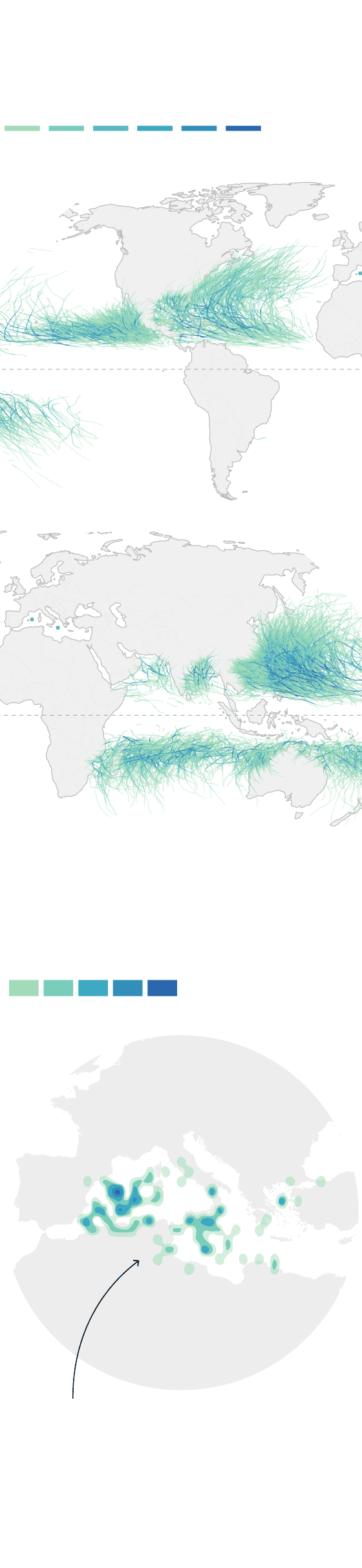 Tanto danas, borrascas como ciclones de características tropicales van a disminuir su frecuencia en el Mediterráneo, pero van a incrementar su intensidad con el calentamiento global, según el sexto informe de evaluación del IPCC sobre los efectos del cambio climático.