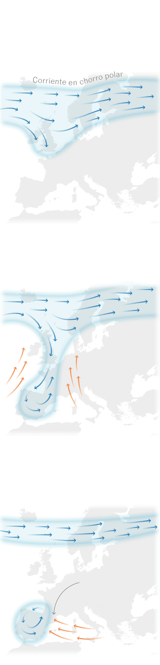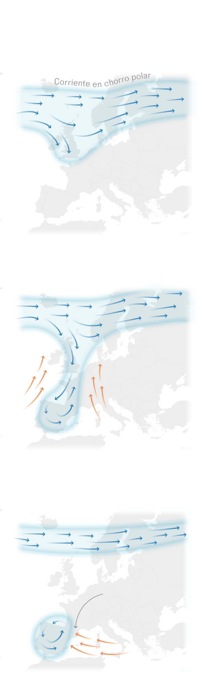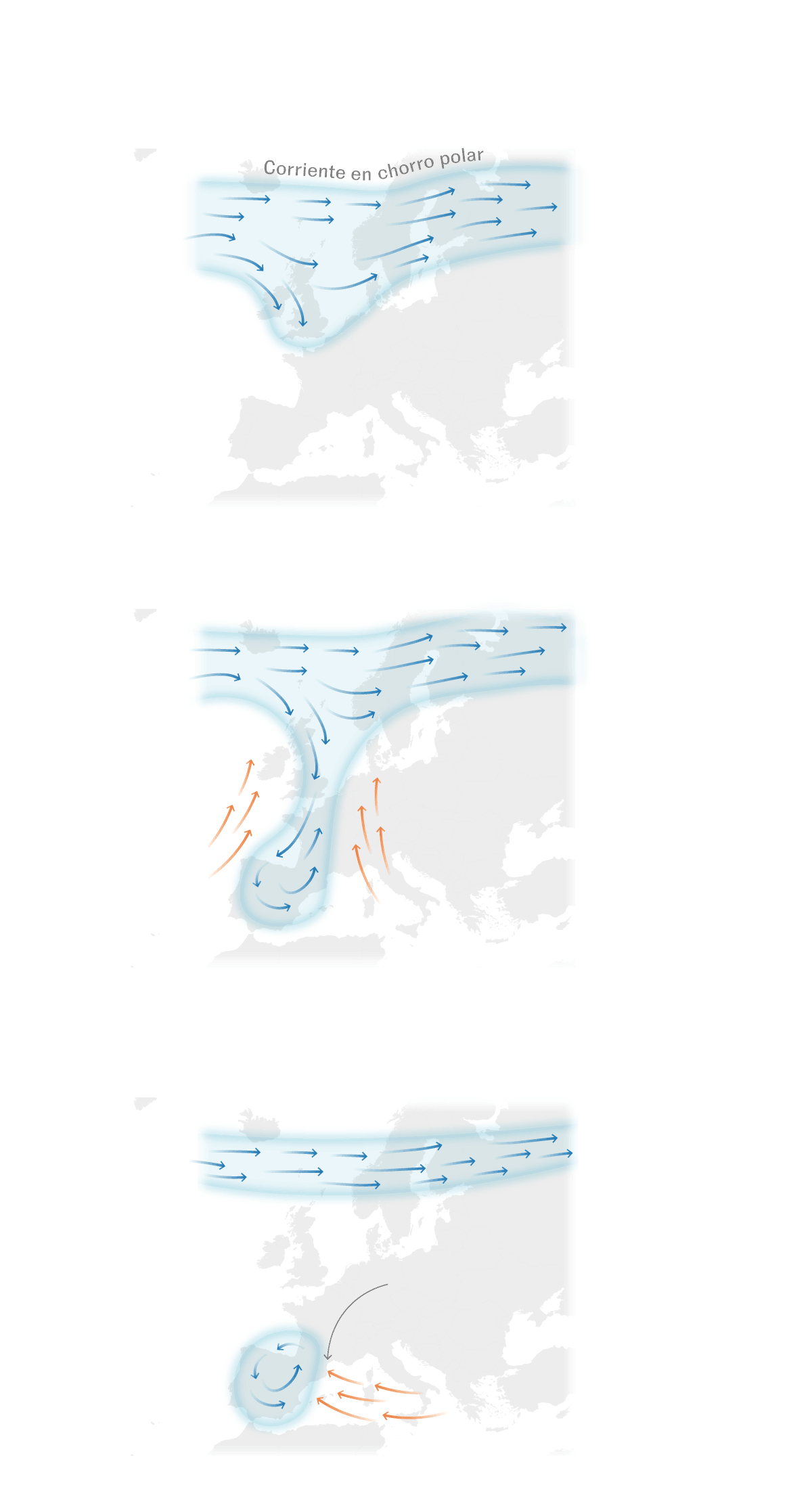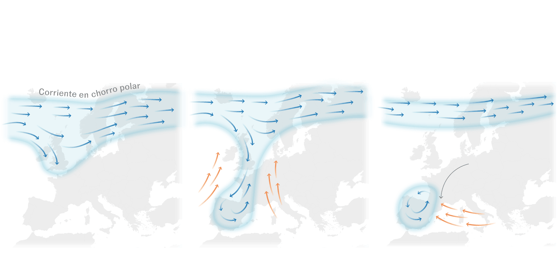 A veces, la corriente de chorro polar, que transita por el norte de Europa, se separa hacia el sur