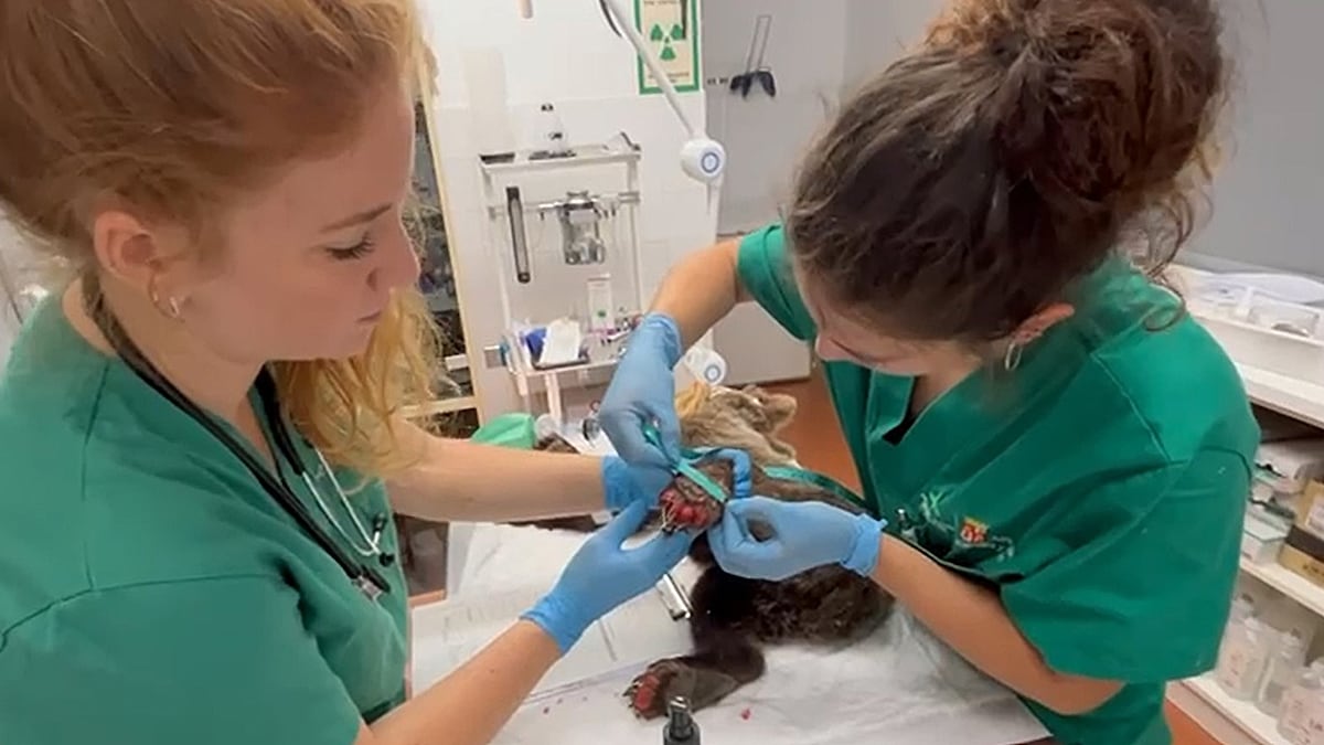 Operación salvar al osezno con las patas quemadas en un incendio de León