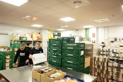 En el campo, en la pescadería, en la carnicería, en el supermercado o en casa: en todos los momentos de la cadena alimentaria, una parte de los alimentos está en riesgo de terminar en la basura. Y el reto es mayúsculo. En el mundo, entre el 30% y el 40% de los alimentos que se producen globalmente se desperdician, según la Organización de las Naciones Unidas para la Alimentación y la Agricultura. En España, se pierde más de un millón de toneladas al año, unos 28 kilos por persona, según el Ministerio de Agricultura, Pesca y Alimentación. “Y eso en el mismo país en el que, a la vez, hay un 13% de la población que no tiene una dieta adecuada, y más de seis millones de personas que sufren pobreza alimentaria y no pueden elegir lo que van a comer”, explica Eduard Sala, director de Cáritas Diocesana de Barcelona. Esta entidad tiene entre ceja y ceja atajar el problema del desperdicio alimentario, y este lunes han mostrado las entrañas de uno de los proyectos con los que consiguen reaprovechar una parte de los residuos. En 2025, Cáritas y la Fundación Formació i Treball, dedicada a programas de reinserción laboral, lograron dar salida a más de 250.000 kilos de alimentos en forma de menús de comedores sociales, comida para cáterings o para restaurantes. De otra forma, habrían ido al vertedero.