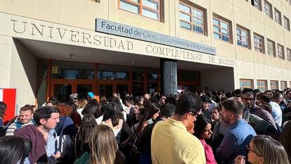 Un escueto comunicado interno de RTVE anunció de manera oficial tres minutos antes de la hora señalada la suspensión de la prueba “por causas de fuerza mayor”, pero para entonces los aspirantes ya conocían el motivo por los medios de comunicación. Sumidos en la incertidumbre y la indignación, los opositores vieron asomarse por una ventana de la primera planta de la Facultad de Económicas de la Complutense al entonces responsable de recursos humanos en RTVE, Jorge de San José. En su discurso a viva voz, aquel directivo pidió “disculpas a todas y a todos”. Y transmitió “que para garantizar la igualdad y la transparencia del proceso” se veían “obligados a aplazar el examen”. Entre las voces de protesta se escucharon gritos de “¡A buenas horas!” y “¿Cómo justificamos que hemos venido?”.