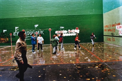 Dos de la tarde. Un grupo de niños juega al fútbol en el frontón descubierto colindante con el bucólico paseo de los Tilos (Ezkiaga). Su pavimento es un espejo por la lluvia y el muro verde está embardunado de pintadas y carteles de la izquierda abertzale: "Gora ETA, Jo Ta Ke (Dale que te pego, uno de los eslóganes de moda entre los borrokas); Uribe, vas a morir..." -Oye, ¿quién es Uribe? -Quién va a ser, un txakurra (perro), el jefe de los cipayos (nombre despectivo de los miembros de la Ertzaintza) de Hernani. Como le cojan...