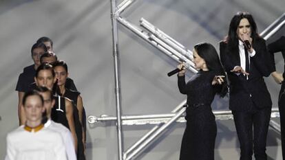 El escenario simulaba una zona en obras con luces intermitentes y las prendas mostraban pequeños detalles sacados tanto de la consulta de un fisioterapeuta como de un edificio en construcción: látex, cuerdas de rehabilitación, material reflectante.... “Porque tenemos que hacernos ver en esta oscuridad”, según Delfín. No hay que ser un lince para darse cuenta que su compañía no atraviesa su mejor momento. “Las ventas han bajado mucho y, cuando pones la televisión, lo que ves es deprimente”, argumenta. “Pero yo quiero celebrar que puedo continuar. Con todas las limitaciones del mundo, pero sigo adelante. Nos faltan muchas cosas, pero lo que no faltan son ganas y alegría”.