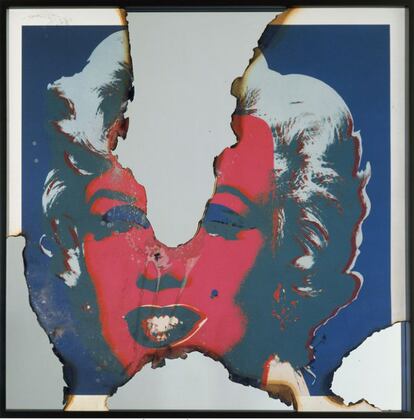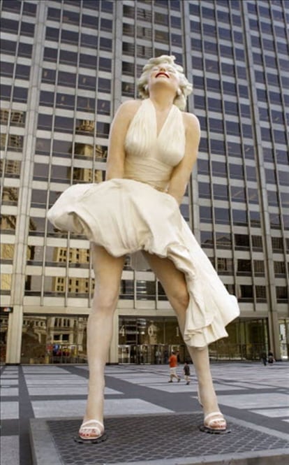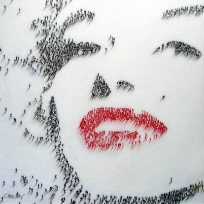 El pionero del arte pop en su versión británica, Richard Hamilton, también hizo a Marilyn suya. A través de diferentes medios y materiales, el artista concentra en uno solo el tema de esta pieza: la eterna rubia del celuloideRichard HamiltonParte de una serie más extensa, 'Cinemaspop', en la que el artista repasa las figuras clave de la cultura pop a través de sus rostros, esta pieza pone de relevancia el papel de Marilyn en la industria cinematográficaAntonio de FelipeEste cartel, obra de Carlos Rolando, se expuso en la estación de metro de Ventas (Madrid), como parte de una muestra de 2002 con la que el Gobierno regional pretendía incentivar el uso del transporte público para acudir a la madrileña plaza de toros de Las Ventascarlos rolandoSeward Johnson, heredero de la fortuna de Johnson & Johnson, creó en 2011 está enorme escultura de bronce con Monroe en la histórica pose de 'La tentación vive arriba'. Con casi ocho metros de altura y más de 1,5 toneladas, la estatua, que primero se instaló en Chicago y ahora se encuentra en Palm Springs, en EE UU, intenta capturar, según el artista, la alegría de vivir de la actriz.seward johnsonEsta ilustración inspirada en 'La última cena' de Leonardo, en la que Marilyn aparece rodeada de algunos de los más grandes nombres en masculino de la historia del cine, se publicó en EL PAÍS SEMANAL en 1995 como parte del reportaje 'Homenaje al cine. Cien años'.renato casaroEl artista estadounidense Craig Alan realiza retratos de iconos pop, como este de Marilyn Monroe, a base de personas a las que coloca y fotografía desde las alturascraig alanRealizado a base de cristales Swarovski, este retrato de la diva fue recientemente adquirido por la cantante Rihanna, que pagó por él 120.000 eurosclaire milnerEl misterioso 'grafitero' Banksy también se ha inspirado en la inmortal intérprete para realizar esta obra, a la que puso el rostro de otro mito pop y compatriota suya, la modelo británica Kate MossbanksyLa fotógrafa estadounidense Zoe Leonard utilizó una de las fotos más emblemáticas de Marilyn para transformarla en otra quizá aún más sugerentezoe leonardEl premio Turner de 1996, el escocés Douglas Gordon, hace revivir a través de una simple peluca a cuatro iconos rubios del pasado siglo, todos fallecidos: el cantante de Nirvana Kurt Cobain, el artista Andy Warhol, la asesina en serie Myra Hindley y, por supuesto, MarilynDouglas GordonEl mismo Douglas Gordon de la peluca rubia retorna a Marilyn en esta otra pieza, parte de una serie mayor: un autorretrato de "tú y yo" -la base es de cristal, con lo que el espectador se ve reflejado- y con Marilyn de fondoDouglas GordonParte de una serie de una treintena de obras sobre la actriz, esta pieza del artista italiano Ugo Nespolo abunda en el proceso de mitificación al que Monroe fue sometida en vida, y que se prolonga medio siglo después de su muerteugo nespoloRon English, cuya obra se caracteriza por la exploración del concepto de marca y publicidad en la sociedad contemporánea, equipara a la actriz y su carácter de objeto sexual con Mickey Mouse como producto para el consumo de masasMarilyn fue musa de pintores y escultores, pero ante todo fue un imán para el objetivo fotográfico. Aunque existen centenares de imágenes suyas, nos quedamos con la belleza afligida y profunda de este retrato de Richard Avedonrichard avedon