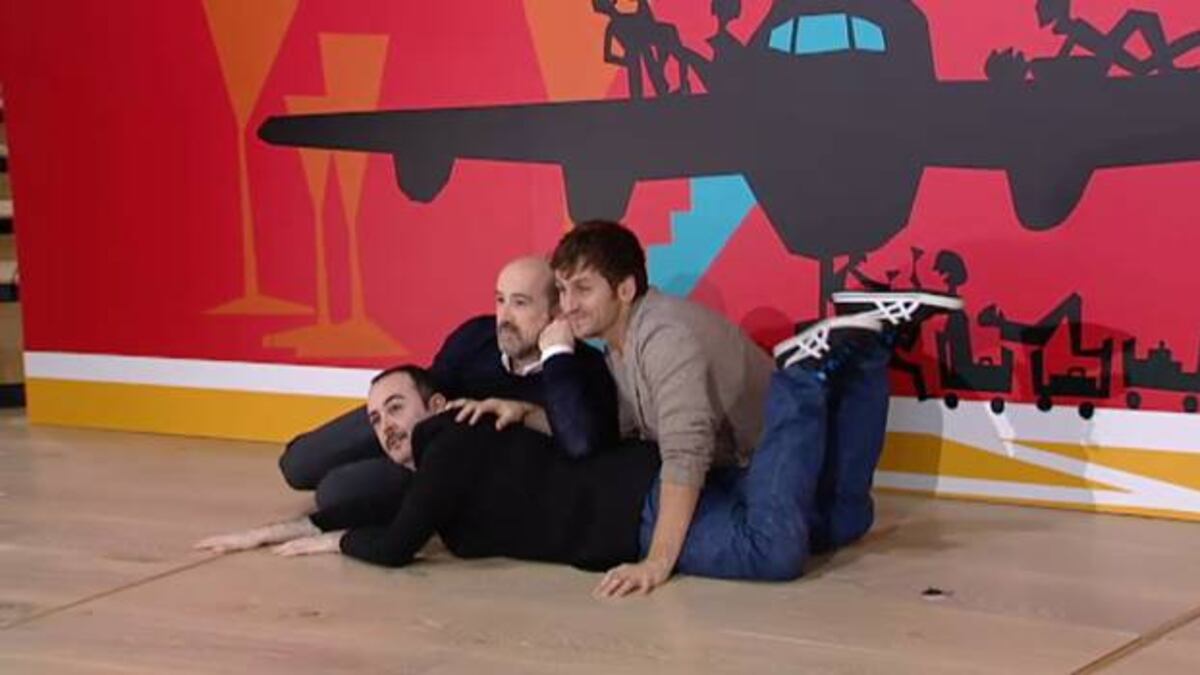 No hay promoción más grande en España que la que mueve Pedro Almodóvar. Por él mismo, y porque hoy en Madrid le acompañaban doce de sus actores. A saber: Javier Cámara, Raúl Arévalo, Carlos Areces, Hugo Silva, Miguel Ángel Silvestre, Guillermo Toledo, José Luis Torrijo, Blanca Suárez, Cecilia Roth, Lola Dueñas, Laya Martí y Pepa Charro. Ante tal cantidad acaban posando como un equipo de fútbol: ocho de pie y cinco en cuclillas. En cuanto a que sean trece, nadie de El Deseo cree en el mal fario. De los protagonistas faltaban Antonio de la Torre, que rueda estos días en Granada Caníbal, y el mexicano José María Yazpik. En una larga mañana, partida en dos por el photocall, una sesión de fotos en la que posaron ante más de sesenta cámaras fotográficas y de televisión, Almodóvar y los suyos fueron entrevistados por más de 50 medios de comunicación, a los que habría que sumar el otro largo centenar de entrevistas ya realizadas en las últimas dos semanas. Desde la productora El Deseo, el jefe de prensa de la película, Javier Giner, asegura que la campaña ya empezó a inicios de enero con las revistas mensuales. Y en este miércoles se concentran los últimos -y grandes- esfuerzos nacionales. La semana que viene arranca la promoción internacional, con viajes a Italia, París, en abril a Reino Unido y, más adelante, Nueva York. "Hemos rechazado muchísimos medios internacionales porque se harán según llegue la película a sus países", cuenta Bárbara Peiró, de El Deseo. Por ahora Almodóvar ha charlado con unos 20 medios extranjeros.