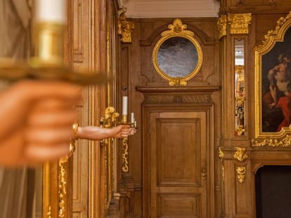 En el viejo edificio solo hay una concesión a la nueva vida del museo: un ascensor circular y transparente que une la calle con el nuevo lobby subterráneo (donde está la tienda, la cafetería y la nueva entrada de acceso a los dos edificios). El resto, una vez cruzadas las puertas de la pinacoteca, es una explosión de historia y antigüedad. Paredes enteladas en colores oscuros, maderas nobles y una sala, llamada la habitación dorada, restaurada hasta el detalle para revivir sus 15 murales de Pellegrini. Un guiño al esplendor de esta vieja gloria que aún flota sobre el lago Hofvijver.