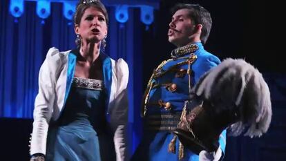 El pasado otoño se vio en el Teatro Real La fille du régiment de Donizetti, otra sátira de militares y aristócratas protagonizada por una mujer en un mundo de hombres. Es imposible no asociar ahora ambas obras, más aún cuando el director de escena de entonces, Laurent Pelly, firmó también en 2004 una espléndida puesta en escena de esta Grande-Duchesse de Gérolstein en Grenoble y París. Ahora ha faltado ahondar en el aspecto sociológico, el que interesó a Siegfried Kracauer cuando escribió su estudio sobre Offenbach y el París de su tiempo, espejo y consumidor de sus escarnios. Pizzi y Soler se han decantado por la diversión pura y dura, haciendo las delicias en el estreno de un público de aplauso y risa fáciles, que lo pasó en grande e hizo suya, al parecer, con entusiasmo y sin mayores reparos la máxima de Bussy-Rabutin.