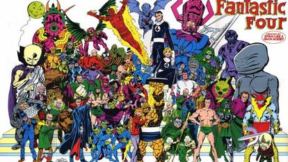 "Los superhéroes ya existían, pero vinculados a la guerra. Cuando se acabó quedaron huérfanos", explica Pacheco. Marvel, que tenía en su catálogo tebeos femeninos y de monstruos, sentaba los mimbres entonces de lo que sería el futuro. Mr. Fantástico era el patriarca, hombre elástico y una de las mentes científicas más brillantes del planeta; su prometida, Sue Storm, era la Chica invisible; el hermano de esta, Johnny Storm, la Antorcha humana, y el amigo de toda la vida, la Cosa, un Jekyll y Mr. Hyde en un personaje, hecho de piedra y con un gran corazón. No tenían identidad secreta. Eran ricas celebridades.