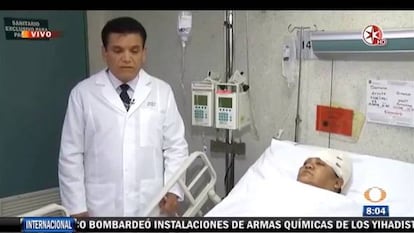 La señora Minerva no tuvo una recuperación tranquila. Además de salir en directo en el programa de Loret de Mola, recibió la visita del secretario de Salud Pública del Estado de México que también quiso registrar el momento en vídeo. César Gómez Monge publicó en su página de Facebook una entrevista personal con la víctima muy similar a la criticada de Televisa. "Hola, Doña Minerva, si puede saludar...", así presentaba de nuevo a la señora a la que tuvieron que reconstruir la columna en un tiempo récord. "Estamos bien, aún estamos vivos", logra decir la víctima con dificultad desde la cama de hospital y con la cabeza vendada.