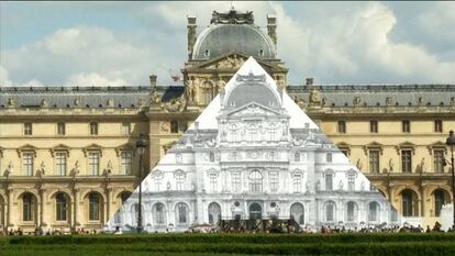 Después de colgar sus imágenes sobre el muro de Cisjordania y las fachadas de las favelas de Río de Janeiro, el artista francés JR ha llegado esta semana al Louvre parisino. Una fotografía gigante que reproduce el pabellón Sully cubrirá una de las caras de la pirámide del museo parisino hasta el 27 de junio, provocando la ilusión de que la estructura de cristal erigida por el arquitecto I. M. Pei en 1989 ha desaparecido del lugar.