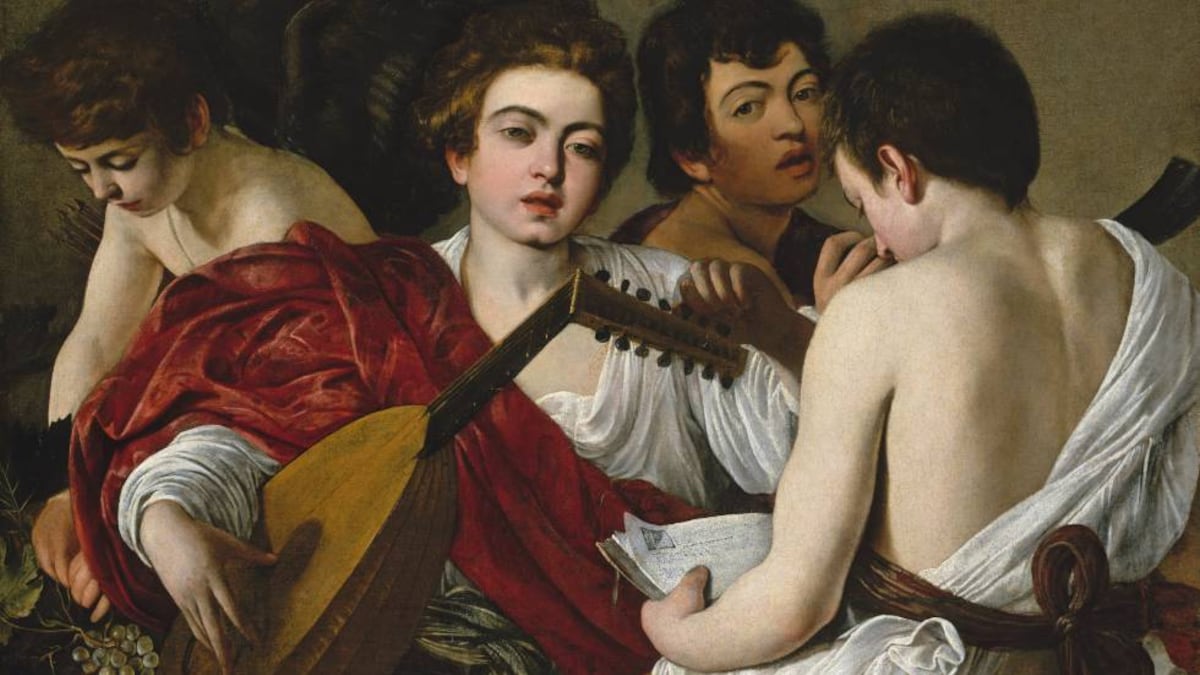 Estructurada en seis apartados, la exposición arranca con obras realizadas por Caravaggio en Roma entre 1592 y 1606. Predominan las escenas de género y bodegones de frutas y flores clásicos de su Lombardía natal como Muchacho mordido por un lagarto (1593-1595). Se incluyen cuadros con los que se ganó la etiqueta de pintor gay (ya en tiempos contemporáneos), como San Juan Bautista en el desierto (1602), pura sensualidad. Después se exhiben lienzos de sus dos primeros admiradores, Adam Elsheimer y Peter Paul Rubens, que introducen chicos de cabellos rizados y el claroscuro para iluminar las escenas.