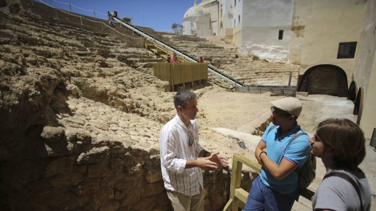 Francisco Alarcón, coordinador del yacimiento y arqueólogo, da buena cuenta del interés suscitado. Va y viene, entre gaditanos y periodistas que le reclaman su atención. No esconde su ilusión por ver deambulando a visitantes por la galería interna, las gradas o los vomitorios de un teatro datado en el último tercio del siglo I antes de Cristo. Como reconoce Alarcón, aunque el centro de interpretación lleva abierto un año, hasta ahora no se podía acceder al yacimiento. “El centro tiene significado porque explica estos restos arqueológicos. La visita ahora mejora de calidad”, apunta.