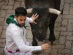 La velocidad de la manada no pudo impedir que el toro de cabeza se estrellara contra el vallado de la curva de la Estafeta, donde, curiosa y extrañamente, estaba esperando un mozo con camisa a rayas que, como manda la lógica, fue arrollado y solo gracias al capotico de San Fermín no está aún bajo los efectos de la inconsciencia.