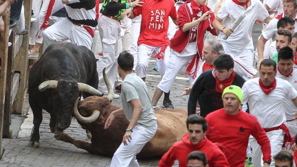 Pero no acabaron ahí los incidentes toristas. En el mismo callejón, otro toro se encontró de pronto con varios mozos caídos, tropezó con ellos y rodó el animal por el suelo, con tan mala fortuna que la incómoda postura final le impidió durante largo tiempo volver a la carrera. Tuvieron que ayudarlo algunos valientes hasta que el animal de capa negra volvió sobre sus pasos y enfiló el diámetro del ruedo como un alma que lleva el diablo. Miedo pasaron los mozos que se encontraron con más de 500 kilos sobre su cuerpo, pero pavor pasaría el pobre toro, que había perdido a sus hermanos y no sabía qué destino le esperaría entre aquellos extraños de apariencia, colores y olores desconocidos para él.