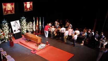El coche con los restos mortales del artista ha llegado sobre las 14.15 al teatro municipal, en cuyas puertas ya esperaban muchos vecinos. El féretro, destapado desde minutos después de abrirse la capilla ardiente, preside el escenario del teatro ante una gran foto del cantaor en blanco y negro y las metopas con los escudos de Andalucía, España y Lebrija. La muerte del artista, quien fue operado de una dolencia cardíaca hace una semana, ha coincidido con el inicio de la 51º edición del festival flamenco La Caracolá Lebrijana, cuyos actos oficiales han sido suspendidos con motivo de los tres días de luto decretados. En concreto, se aplazan la Semblanza a Rodríguez Cosano, la Audición de Guitarra Flamenca y la actuación de Inés Bacán. "Compartimos el dolor de una familia que tanto ha dado por el arte. Prepararemos próximos homenajes en recuerdo de alguien que nos ha dado a conocer en todo el mundo", ha señalado la alcaldesa.