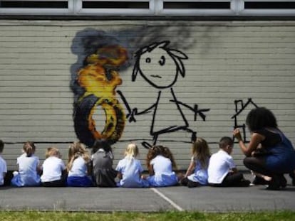 Un episodio similar ocurrió hace tres años en el barrio londinense de Wood Green. La pintura Slave Labo, en la que Banksy mostraba a un niño cosiendo banderas de la Union Jack como denuncia del trabajo infantil, fue arrancada de la pared para reaparecer cuatro meses después en una subasta de arte en Miami. Las protestas vecinales resultaron inútiles, porque los dueños del edificio en el que estaba emplazada eran legalmente también los propietarios de cualquier obra que los espontáneos decidieran plasmar en su fachada.