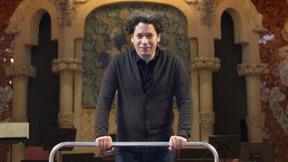 Remolino, terremoto de emociones, fuegos artificiales, pirotecnia. Los calificativos le brotan como un torrente al director Gustavo Dudamel cuando quiere definir qué representan las nueve sinfonías de Beethoven interpretadas por la Orquesta Sinfónica Simón Bolívar de Venezuela. Una experiencia que se vivirá en el Palau de la Música de Barcelona a partir de este domingo y hasta el miércoles. Cinco conciertos en cuatro días. Un maratón musical “con el mejor compositor de la historia” —Dudamel no lo duda— para el que ya no queda ni una sola entrada. El músico venezolano, que también lidera la Filarmónica de Los Ángeles y se convirtió en la batuta más joven que ha dirigido el último concierto de Año Nuevo con la Filarmónica de Viena, se mostraba entusiasmado con el programa después del primer ensayo: “Esta sala es preciosa y muy especial”. La conoce bien ya que no ha fallado en las últimas tres temporadas, la pasada también con la Simón Bolívar. Con ella inició hace dos semanas la gira de la integral de las sinfonías en Caracas y que en Europa tiene tres ciudades. Arranca en Barcelona para después recalar en Hamburgo y, por último, Viena.