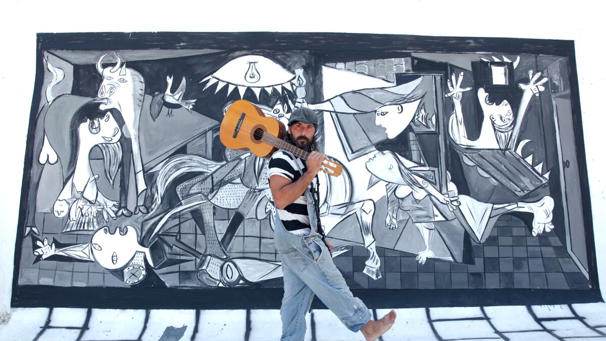 “La pintura forma parte de mi vida, igual que la música. Hice un cuadro antes que una canción, porque me era más sencillo coger un papel, pintauñas y pintalabios de mi tía y liarla”. Ahora, de mayor, Miguel Campello Chatarrero ha tenido la ocurrencia de homenajear a Picasso; y ha pintado el Guernica en un muro de su casa murciana. “Para mí fue un momentazo cuando me planté delante del Guernica. Yo crecí en Matola (Elche), es una pedanía pequeña, y allí no había muchos museos”, recuerda el creador, quien, tras enterarse de que la obra maestra de Picasso cumplía 80 años, decidió reproducir un cuadro que descubrió en 2008, como tantas otras cosas, en Madrid.