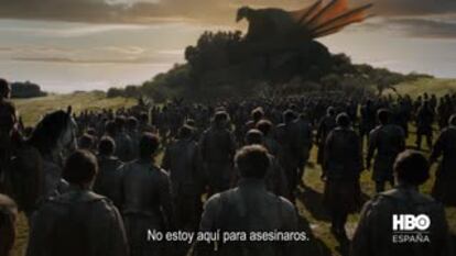 Vuelve la acción a dónde empezó en este capítulo, al sur. Los Tarly le dicen a Jaime que el oro ya ha llegado a Desembarco del Rey, pero que tiene que apurarse el resto del ejército y forzar la marcha para evitar emboscadas. Demasiado tarde. En un escenario que recuerda un poco al salvaje oeste (Todo esto fue grabado en Los Barruecos, Extremadura), aparecen por el horizonte una horda de dothrakis. El ejército Lannister tiene tiempo para preparar su defensa, pero para lo que no están preparados es para la aparición de un dragón con su madre cabalgando. Drogon y su fuego arrasa con todo. La batalla es épica, mucho mejor que la naval de dos capítulos atrás. Jaime trata, sin éxito, de defenderse.