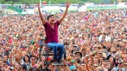 En la historia de Marcus Haney participó mucha gente. Entre las trepidantes historias que esconde el periplo festivalero de este joven de Los Ángeles, destaca la que ocurrió en el año 2015. Internet se enloqueció con una foto de un joven en silla de ruedas que sobrevolaba el público de Glastonbury mientras disfrutaba de uno de los conciertos. Una trama que no ocurrió exactamente así, porque no tuvo lugar ni en ese año, ni en ese festival. Tras la expansión en redes sociales de la instantánea, se supo la verdad. El protagonista no era otro que Ryan Chen, un joven de 27 años que era amigo de Marcus Haney, con quién se coló en 2013 al Outlands Festival de San Francisco. De este evento es la imagen que captó el fotógrafo Jeff Kravitz mientras Chen disfrutaba de un concierto de Young the Giant.