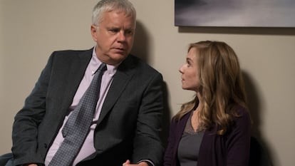 Ambos intérpretes son grandes exponentes de lo que el cine fue hace no tanto. Hunter, 59 años, tiene un Oscar (El piano,1993) y dos premios Emmy. Robbins también posee una estatuilla de la Academia de Hollywood por Mystic River (2003). “Me acostumbré a trabajar con realizadores nacidos para dirigir”, resume la actriz de una carrera que, como Robbins, estuvo llena de autores. “Y seguimos siendo guerreros”, añade separándose de las horas bajas del cine. De ahí que ambos se refugien en Ball, ganador del Oscar como guionista por American Beauty (1999) y con numerosas candidaturas al Emmy, premio que obtuvo en 2002 con A dos metros bajo tierra, y en la televisión. Como apunta Robbins, en este medio “hay espacio para la experimentación”. Y como añade Hunter, hay lugar para mujeres como ella, “que buscan historias fluidas, cambiantes y diversas”.