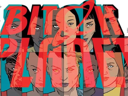 Desde hace poco comparten habitación, y él se pone cascos para no tener que escuchar la música clásica que ella necesita para trabajar, y ella cree que la de los cascos debería ser ella desde que él se ha comprado un teclado que imita el sonido – y hasta el aspecto – de una vieja Underwood. “Antes escribíamos por separado, pero nos mudamos y empezamos a compartir despacho. Nos sentamos incluso a la misma mesa”, dice ella. Ella es Kelly Sue DeConnick (Ohio, 1970), la responsable de la demoledora Bitch Planet, suerte de soap space opera, una distopía futurista en la que la Tierra está gobernada por el Protectorado, un patriarcado cristiano capitalista (radical) en el que la vida de las mujeres deben aceptar el lugar que les ha tocado en la sociedad, el de florero (así lo designa el Consejo de Padres), y si no lo hacen, serán consideradas NC (No Conformes) y enviadas al Puesto de Obediencia Auxiliar, al Planeta de las Zorras –Bitch Planet–, esto es, un planeta cárcel. Pero no sólo eso. DeConnick también firmó la primera Capitana Marvel decididamente feminista, y si Juan Antonio Bayona pudo dirigir parte de una serie llamada Bella Muerte fue porque ella tuvo un día la idea de que eso fueran un puñado de cómics.