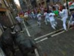 Abarrotada estaba la calle Estafeta en este último día. Bonitas carreras de los mozos más experimentados, numerosas caídas producidas por la velocidad de los toros -cuatro patas avanzan más que dos piernas-, y así llegó el grupo hasta el tramo de Telefónica, donde, como suele ser habitual, se habían apostado varios corredores que fueron barridos por los morlacos que no contaban con la curva ni con los visitantes.