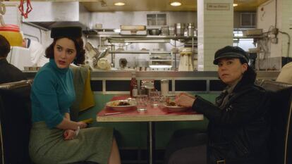 Esa cadencia es la que utilizan para hacer natural la inesperada amistad de la protagonista con su representante, interpretada por Bornstein. Un juego de personajes opuestos que, para sus creadores, es el alma de la serie. Así se complementan también en la vida real. La elegante Rachel Brosnahan, protagonista desatada en la ficción cuando sube a escena, tiene estudiado su discurso tras su imagen de estrella perfecta, mientras que Borstein, criada en la mesa de guionistas mayoritariamente masculina de Padre de familia (donde pone voz además a Lois), se lanza a traducir una y otra vez "polla dura" al italiano. La primera se ha quedado en su hotel en Italia, pero la segunda, que vive en Barcelona, lleva días visitando y comiendo todo lo que puede. "Esta amistad es sencilla. No nos obligan a hablar solo de hombres. Es una relación más real, donde dices a una amiga 'que te jodan', 'hazlo mejor', 'deja de comportarte así por un hombre'... Lo entendemos mejor. Esa intimidad es difícil de ver", explican.