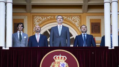 Compartió palco real con el torero Juan José Padilla, el ministro de Fomento en funciones José Luis Ábalos, el presidente de la Comunidad de Madrid en funciones, Pedro Rollán —ambos en funciones— y el director del Centro de Asuntos Taurinos de Madrid, Manuel Ángel Fernández. Entre el público se vio a toreros como El Fundi y personalidades como Andrés Calamaro, Vicente del Bosque y Terelu Campos, así como los políticos del PP Adolfo Suárez Illana y Andrea Levy. La sobrina del Rey, Victoria de Marichalar, presenció también la corrida desde el tendido.