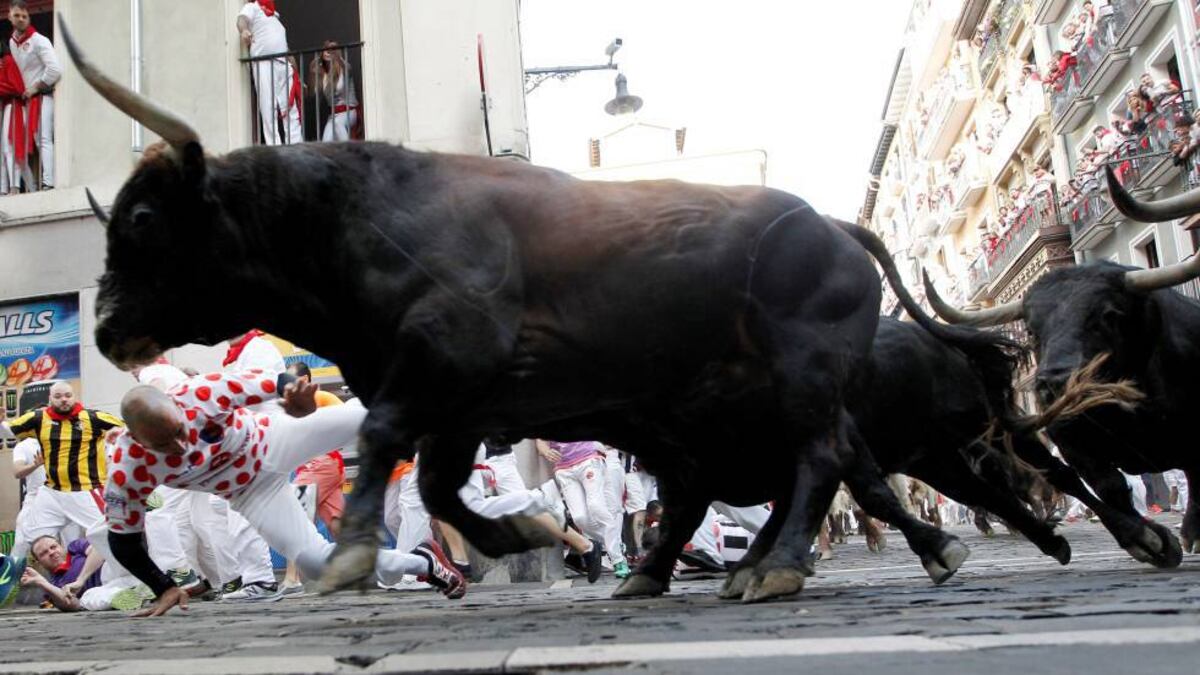 Una mañana más, los cabestros impusieron su veteranía en el inicio de la Cuesta de Santo Domingo y tomaron la cabeza antes de alcanzar a los primeros humanos; pero San Fermín es muy duro y ya se les nota el cansancio, de modo que los jóvenes atletas venidos desde la provincia de Cádiz pronto le ganaron la delantera. Así, cuando aún subían la larga pendiente y antes de enfilar la plaza del Ayuntamiento, hasta tres toros dirigían la manada, a los que se les unió un cuarto cuando se acercaban a la curva de Mercaderes-Estafeta.