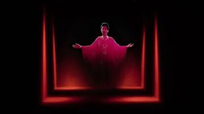 Francesca Thyssen-Bornemisza (Lausana, Suiza, 61 años) recorre la exposición que ha montado en el sótano del museo nacional que lleva su apellido. “Aquí, menos luz... Y este banco más a la izquierda”. Retira delicadamente una mota del marco que cubre una alucinante tela de araña tintada y fijada sobre papel, obra del artista argentino Tomás Saraceno. El ¿cuadro? es suyo y, junto a una fantasmagórica instalación de Dominique Gonzalez-Foerster, forma parte de la exposición temporal Más-que-humanas que se inaugura este martes en el Museo Thyssen. Es la primera exhibición prevista en un contrato de cuatro años, que compromete al museo a exponer dos muestras al año de la colección de Francesca. Y allí estará ella para asegurarse de que todo está perfecto.