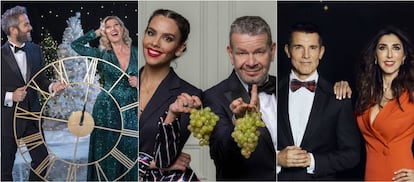 La programación de Nochevieja vuelve a ofrecer casi lo mismo que todos los años. Como ocurre en Nochebuena, el riesgo de las cadenas generalistas es cero y apuestan todo a lo que saben que les funciona en una noche en la que es habitual que las familias tengan puesto el televisor de fondo. El año pasado la audiencia prefirió La 1 para el momento de las campanadas (7.142.000 espectadores, 40,8% de cuota de pantalla), seguida de Antena 3 (4.148.000, 23,7%), Telecinco (920.000, 5,3%) y La sexta (704.000, 4%). ¿Con qué cadena va a pasar la última noche del año y va a recibir a 2020?