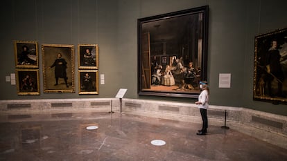 “Aquí, más que del coronavirus, podríamos testar a los visitantes del síndrome de Stendhal”, dice Miguel Falomir sobre esa enfermedad imaginaria que bautizó en Florencia el escritor francés, mareado por tanta maravilla artística. El director del Prado está en mitad de la sala 12, el sancta sanctórum del museo. Las meninas siguen ahí, como siempre, posando en el espacio inusualmente vacío, pero la cosa está más animada que de costumbre esta mañana del Madrid de la fase 1. Son los nuevos vecinos: Las hilanderas, Los borrachos y cinco bufones velazqueños dispuestos a la manera de un retablo han dejado las salas donde habitualmente se encuentran para acomodarse temporalmente aquí, como parte de Reencuentro, la exposición de 250 de las obras más representativas de la colección permanente con la que el museo reabre sus puertas este sábado tras un parón de casi tres meses forzado por la pandemia.