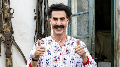 Con Sacha Baron Cohen (Londres, 49 años) la polémica está asegurada. Capaz de hacer reír con sus gracias o desgracias, es el primero en llamarse bufón, un término que el actor y cómico utiliza para describir su trabajo ya sea disfrazado de Ali G, Bruno o el célebre Borat. Rudy Giuliani, el abogado de Donald Trump, es el último en quejarse del ingenio de Baron Cohen, al ser grabado en una situación más que comprometedora en la habitación de un hotel con una supuesta periodista en Borat Subsequent Moviefilm: Delivery of Prodigious Bribe to American Regime for Make Benefit Once Glorious Nation of Kazakhstan. Es decir, la secuela de Borat, ya disponible en Amazon Prime Video. Por tanto, lo que sorprende es la seriedad con la que conversa alguien que siempre suele hablar como su personaje, en el caso de Borat, un falso periodista homófobo, machista y racista procedente de Kazajistán.